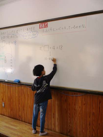 □はどうやって考えたのかな?考え方を話し合っています。
