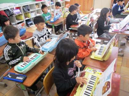 鍵盤ハーモニカで「こぐまの二月」を演奏しています。