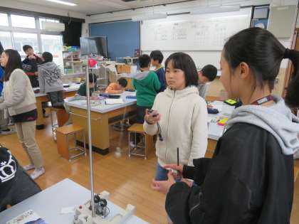 結晶作りでは,正八面体のきれいな結晶ができあがりました。「ふりこの動き」では,振り子の速さ(1往復にかかる時間)がふれはばやおもりの重さによって変わるのかを検証しました。