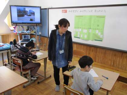 地下鉄に乗って行ってきた社会見学のふり返りをしています。