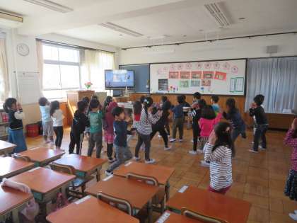 写真の時間には,机の使い方,ロッカーの使い方を学習した後,みんなで楽しく踊りました。