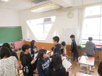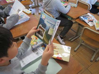 1組では,新しい教科書をみんなで配っていました。もらった教科書を興味津々で読んでいました。