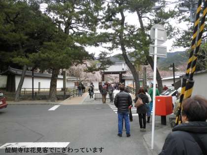 醍醐寺の境内は,いっぱいの人です。他府県ナンバーの車も駐車場に入れず立ち往生しています。