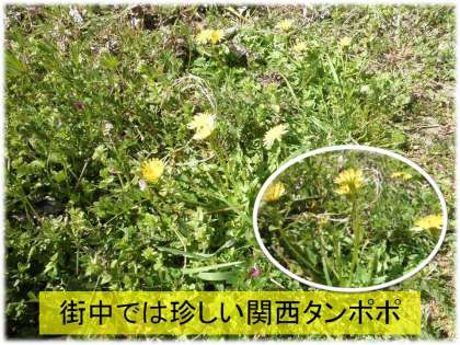 校内を歩いていると,今年も街中では珍しい「関西タンポポ」を見つけました。昨今は,外来種の「西洋タンポポ」がほぼ100%を占めていますが,昨年見つけた「関西タンポポ」の場所に今年も咲いてくれました。
