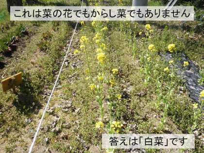 畑に行ってみると,菜の花(アブラナ)かな?からし菜かな?と思って近づいてみると,なんと白菜の花でした。