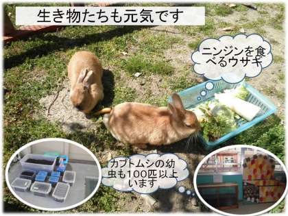 うさぎたちは,今日もニンジンをパクパク食べて日光浴です。