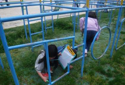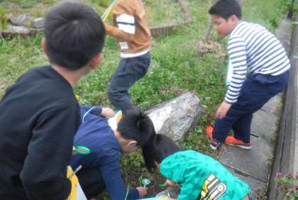 3年生は,理科の授業で校内にある自然を虫眼鏡を使って観察に出かけました。