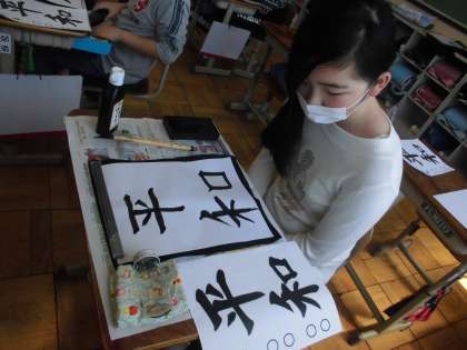 横画と縦画を意識しながら気持ちをこめて書きました。