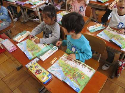 数図ブロックの使い方を学習しました。さっそく使って学習です!しっかり数えられるかな?