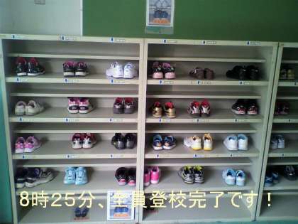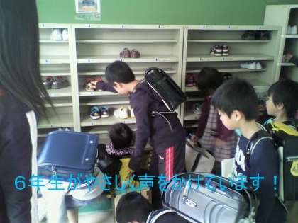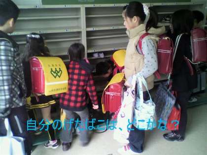 上級生に、下駄箱の場所を教えてもらって、教室へあがりました!