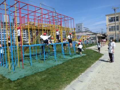 1年生では,体育の授業で50m走と総合遊具の使い方を学びました。