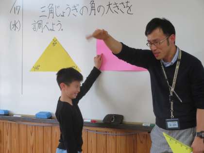17日(水)の参観授業で,4年生は算数科「角とその大きさ」の学習を行いました。角の大きさをどのように求めればよいかを一人一人が考え,その考えをみんなに伝えていきました。そしてみんなで意見を出し合い,答えを導き出せるようになりました。
