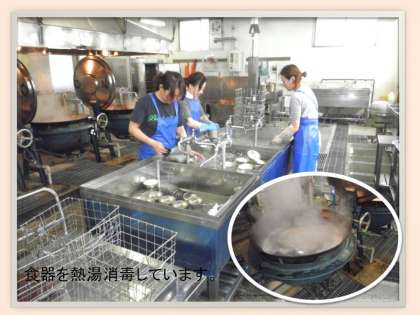 給食室では,昨日から準備がはじまっています。今日は,全校児童の食器の熱湯消毒をされていました。
