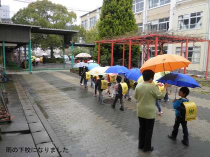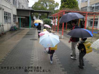カサをさしての下校も,これから何回もあることだからしかたないですね。