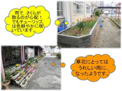 一方,花壇やプランターの草花にとっては,恵みの雨になったようです。