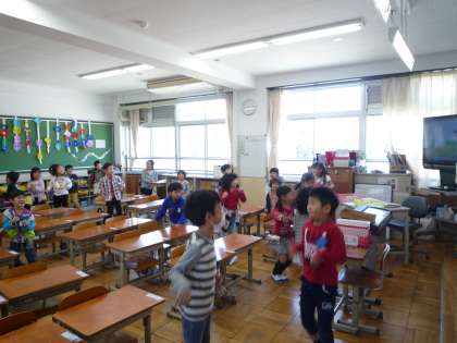 朝会のあとは,教室で