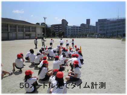 春の体力測定として「50メートル走」のタイムを計りました。