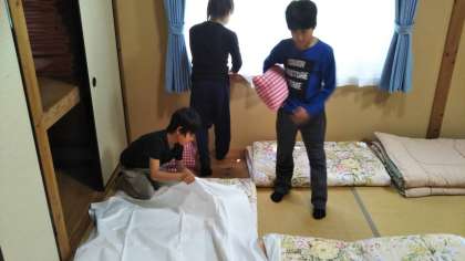 寝具準備をしました。この後から活動が続くので,見通しを持って先に準備をしました。