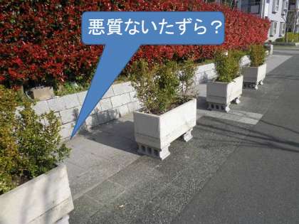 昨日?一昨日?西団地4街区のプランターの植え木が,すべて抜かれるという悪質ないたずらが発生しました。