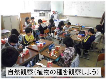 最初の単元は「しぜんかんさつ」です。植物の種を観察し,実際に植えて育てます。