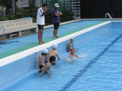 とても暑い日になりました。水泳学習に最高のお天気です。4組の子どもたちはお昼から水遊びをしました。とてもきもちよかったです。