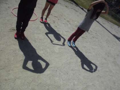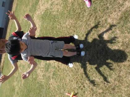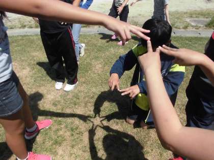 今日は運動場に行って,いろいろな形のかげを作りました!