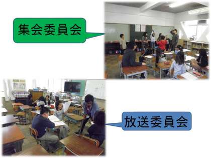 委員会活動は,奉仕活動,勤労活動であり,そして,責任ある当番活動でもあります。そういった意味では,教科の学習より大事な部分を持っています。楽しい学校作りのためには欠かせない活動です。