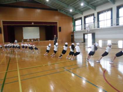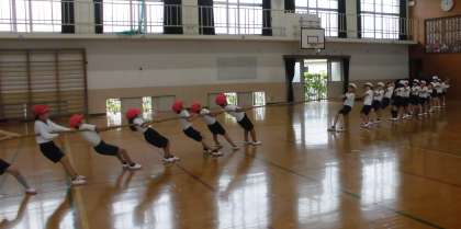 雨のため,体育館で線おにと綱引きをしました。