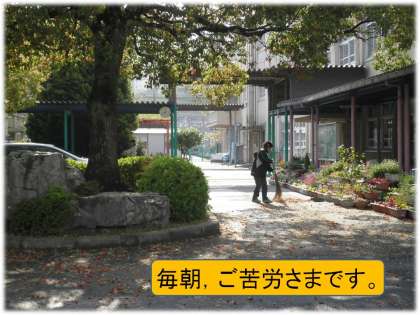 毎朝,管理用務員さんが,子どもたちの登校前にきれいに掃いていただいています。