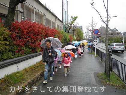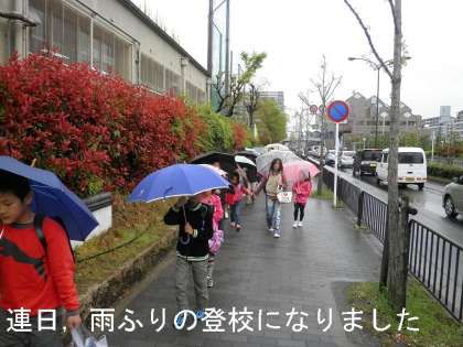 でも,今日も時間通り,集団登校でやってきました。雨のせいか?「おはようございます」のあいさつのテンションが少し低めでした。こんな日こそ,明るく元気にふるまいたいですね。
