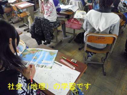 今日は,社会で地理の勉強をしました。世界の大陸や国の位置について,個々に調べ学習をしました。答え合わせもペアでしっかりできています。