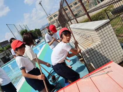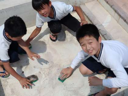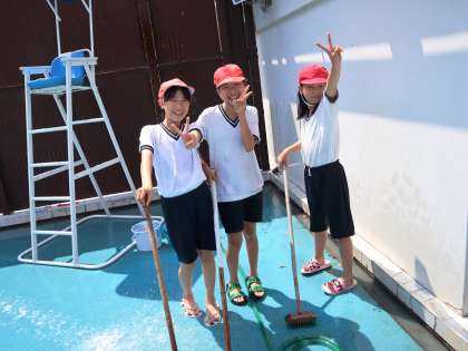 午後からプール清掃を行いました。5年生は,更衣室やプールサイドを掃除しました。1年間の汚れをみんなで元気にしっかり落として,ピカピカにしてくれました。みんな気持ちよくプール学習がスタートできそうです!