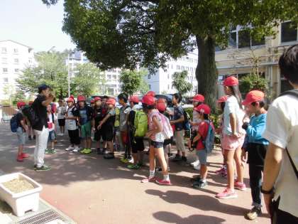 みんな元気に新山科浄水場に出発です!