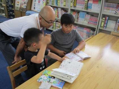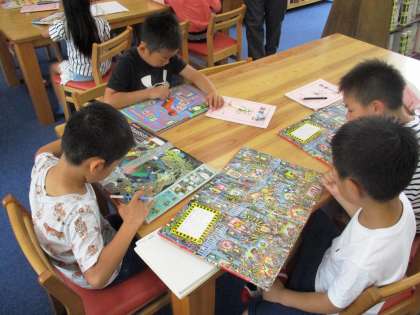 体育科の学習でたくさん動いた後,図書館で読書をしました。楽しく落ち着いた気もちで大好きな本を読んでいます。