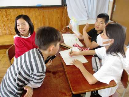 理科の後,「一緒じゃヤ〜よ」ゲームをしました。盛り上がっています。