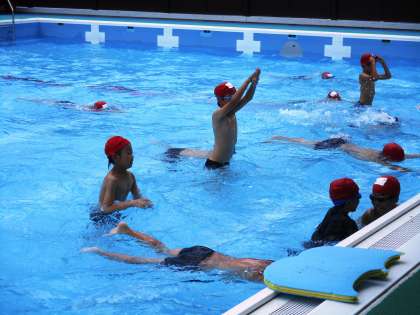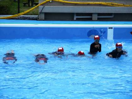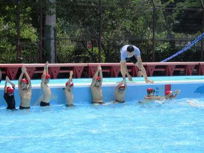 ふし浮きをしながら,基本の姿勢についてしっかり練習しています。