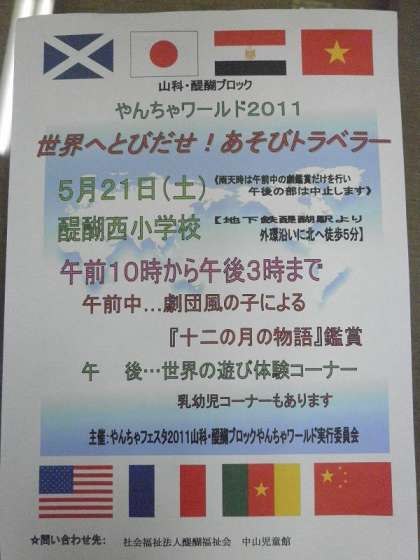 さわやかな5月,いいお天気の下で,毎年恒例の児童館・学童保育所まつり「やんちゃワールド2011」が本校で実施されます。(10時〜15時)