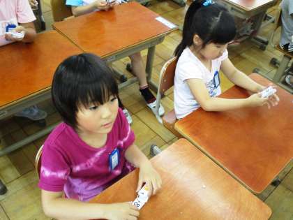 計算カードを使って,ひき算の練習にどんどん取り組んでいます。