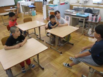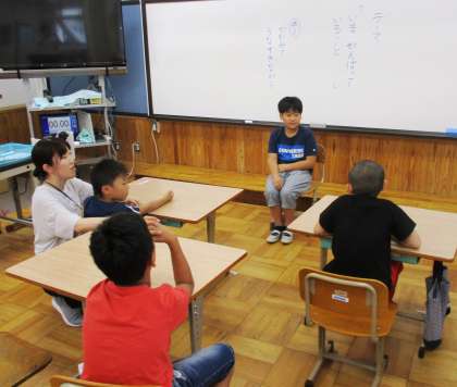 相手の顔を見て,うなずきながら話を聞く練習をしています。しっかり質問もしながら聞いています。