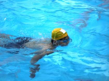 何m泳げるかな?距離に挑戦してがんばっています。