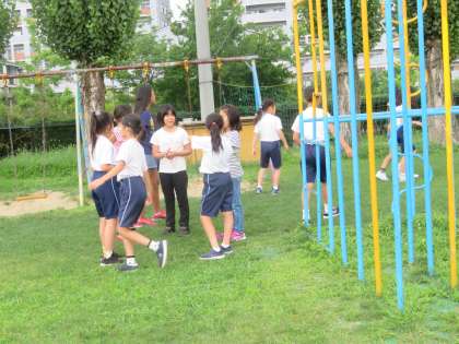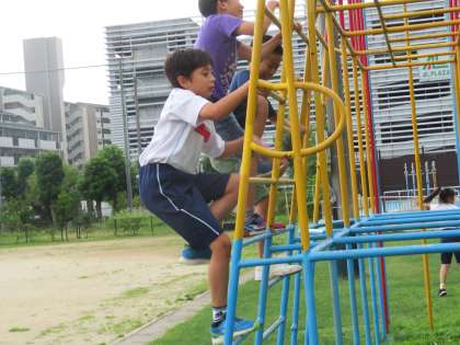 昼食後は,少し長めの昼休み。サッカーをしたり,総合遊具や鉄棒で遊んだりして楽しみました。みんなあせをたくさんかいて,動き回っていました。とてもすてきな表情をしていました。