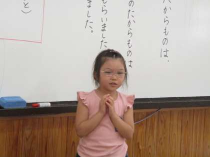 自分のたからものについて,友だちに伝えました。誰にもらったのか,どこで買ってもらったのかなどについて考えて発表しました。「どんな時にもらったんですか?」など質問も受けながら発表しました。