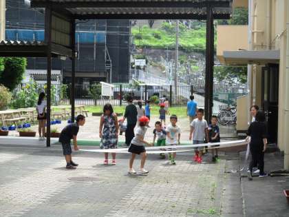 今日はたてわり遊びでした。それぞれのグループで楽しく遊ぶことができました。
