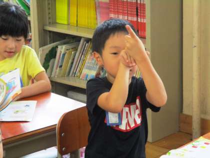 いろいろな歌を歌いました。動作もつけながら楽しく歌っています。