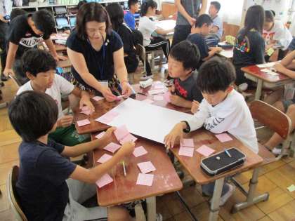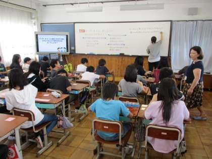 ゲストティーチャーに来ていただき,情報モラル教室を行いました。事例から,インターネット上に書き込む時に気を付けることについて考え,話し合いました。