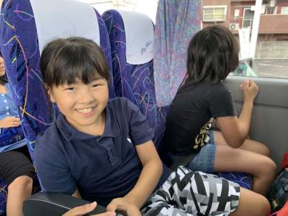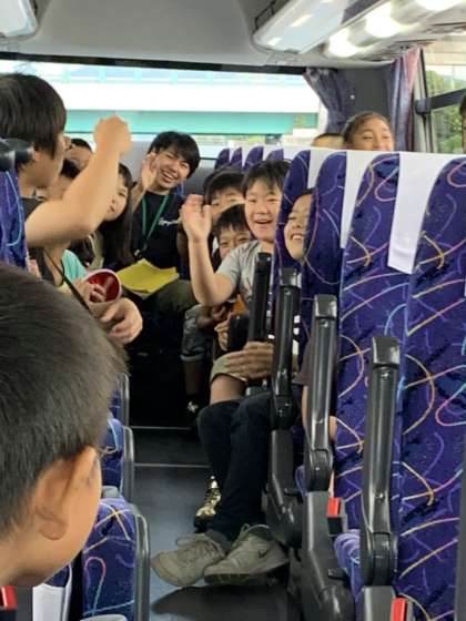 出発式が終わり,バスに乗り込みました。みんなとても元気で,ワクワクしている様子です。途中トイレ休憩も入れながら,11時45分頃に志摩自然学校に到着する予定です。