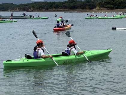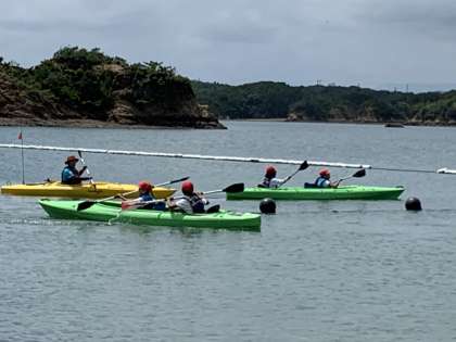 右,左と2人で心を合わせながらパドルを漕いでいます。
