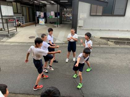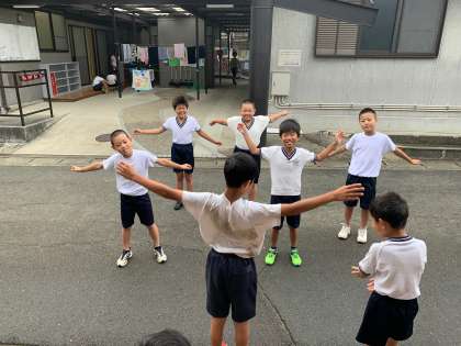 ラジオ体操をしたり,ドラガオじゃんけんをしたり楽しんでいます。