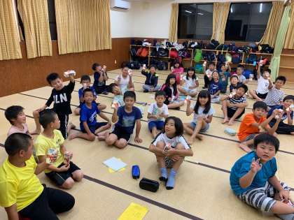 雨予報も吹き飛ばし,海での活動を満喫した4年生ですが,みさきの家でもとうとう雨が降り始めました。