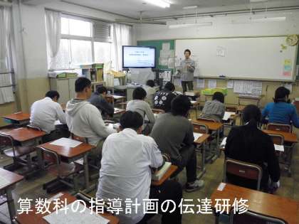 今年度から実施される,新学習指導要領に則って,各教科の指導内容が変わります。3月に教育委員会主催の説明会がありましたが,その研修を受けた者が,全教職員に伝達研修会を開きました。